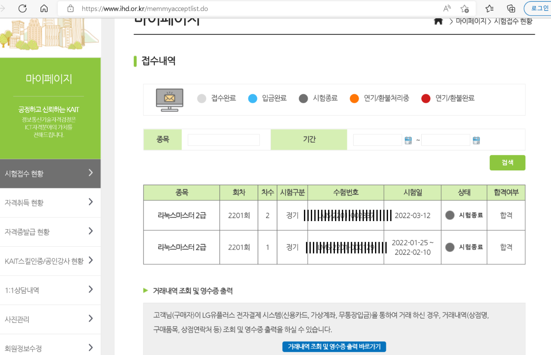 2022년 3월 12일 시행된 리눅스마스터 2급 2차 필기시험에 합격했습니다.