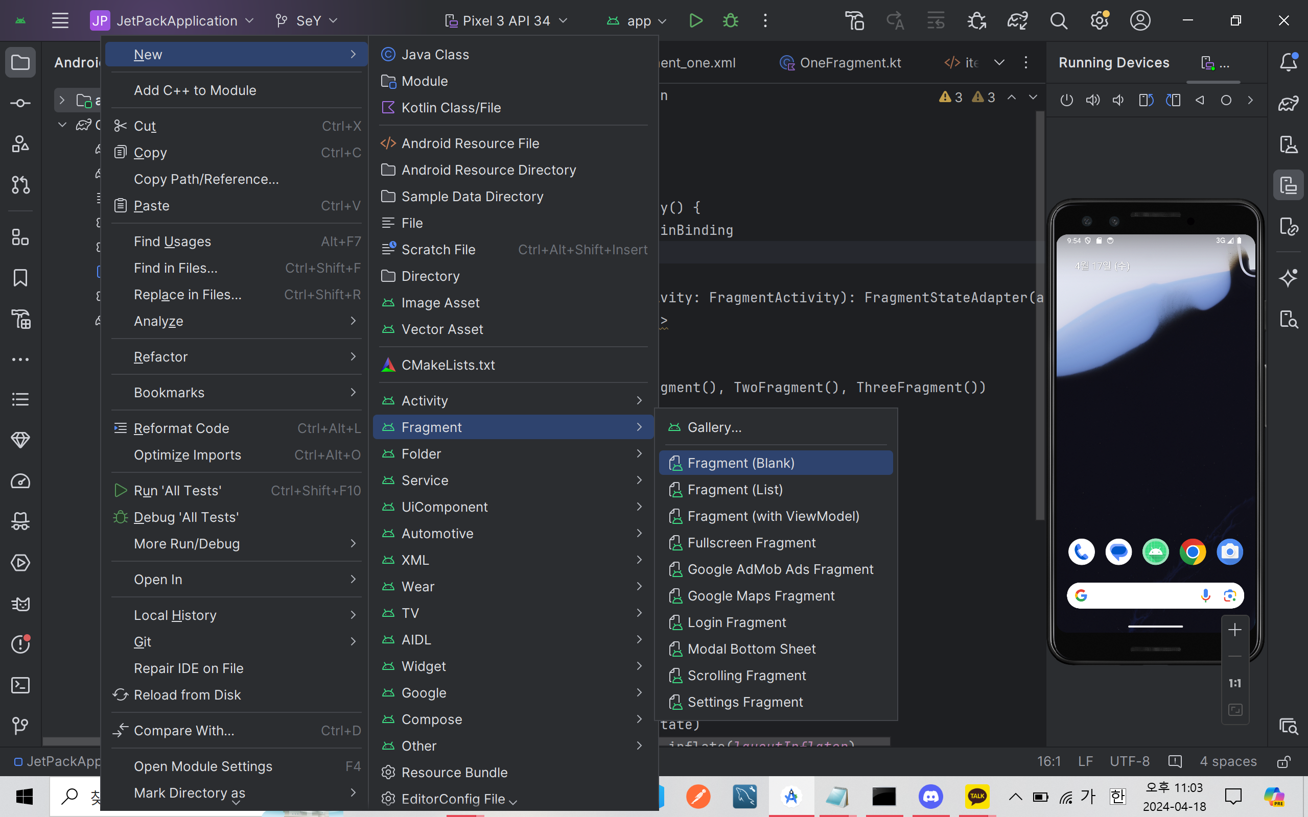 | [Kotlin] Material 라이브러리, 플로팅 버튼, Tab 레이아웃, 뷰페이저 (2) | 2024.04.26 |