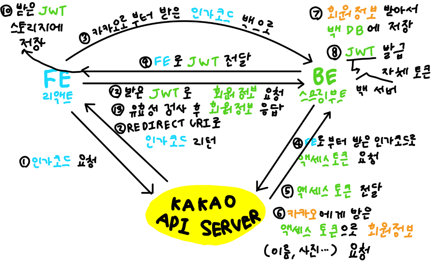1. 클라이언트에서 인가 코드 및 토큰 발급을 받고 그 토큰을 스프링 서버로 보낸다.