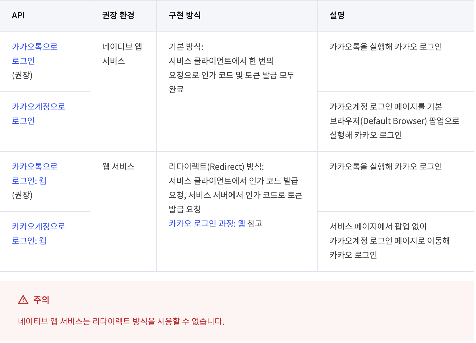 네이티브 앱 서비스를 이용하면 리다이텍트 방식을 사용할 수 없다고 뜹니다. 따라서 두 방식으로 카카오 소설 로그인 서비스를 이용하는 방식에 대해서 정리해 보겠습니다. 먼저 리액트와 같은 웹 서비스를 사용해 리다이렉트 방식으로 인가코드와 토큰을 발급하는 메커니즘을 소개하겠습니다.