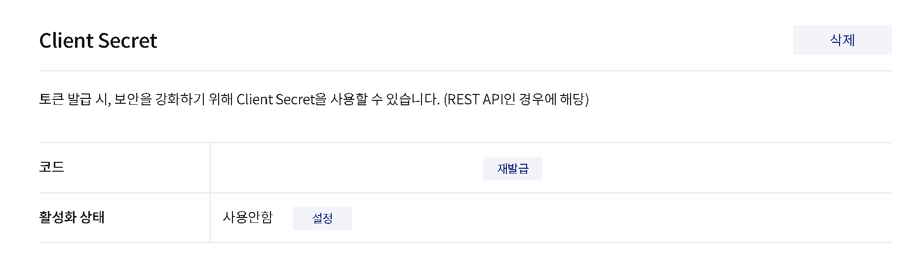 제품설정 > 카카오 로그인 > 보안 페이지에서 Client Secret 코드를 발급받아 서버의 client-secret 값으로 사용합니다.