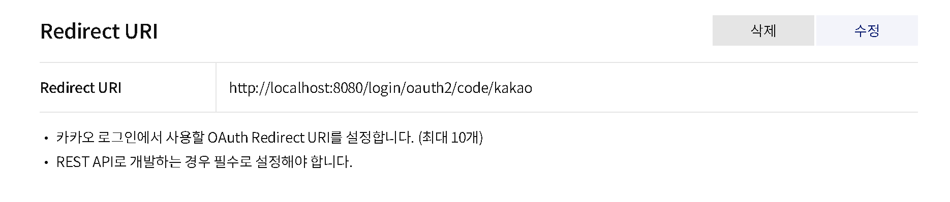 Redirect URI를 설정합니다.