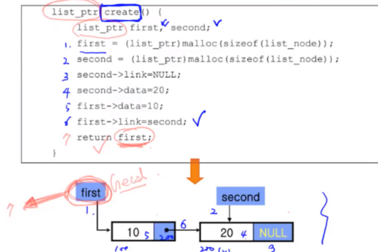 first-> link = second; // first가 second의 데이터를 가리키도록한다.