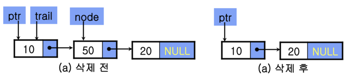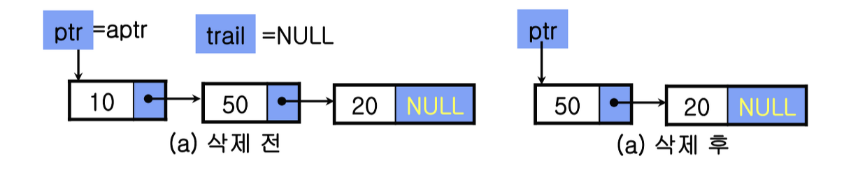 - trail : 삭제될 노드의 바로 앞 노드를 가리키는 변수