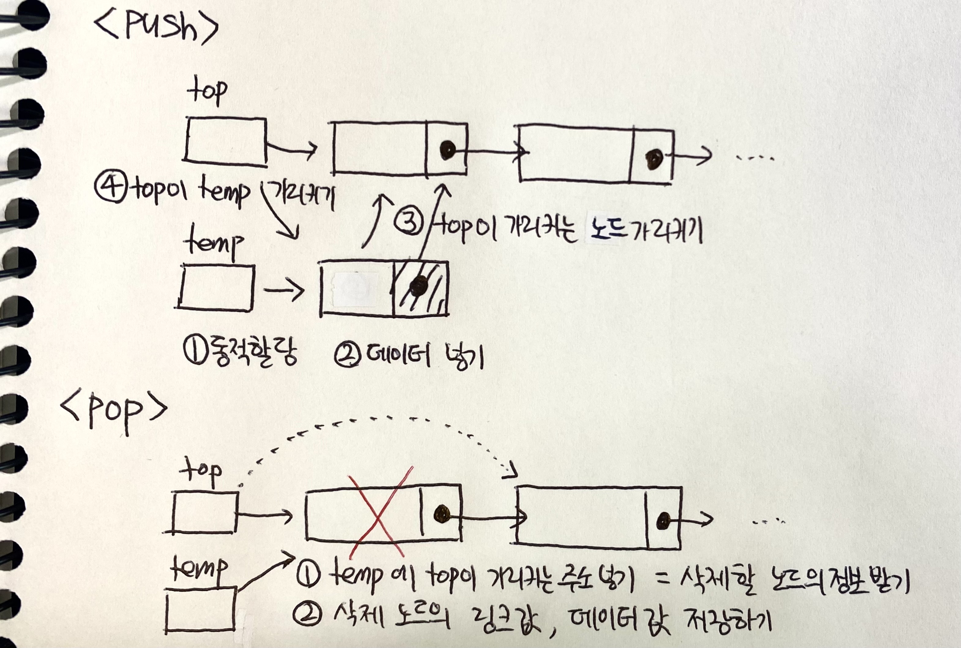 1. temp에 top이 가리키는 주소 넣기 = 삭제할 노드의 정보를 받기