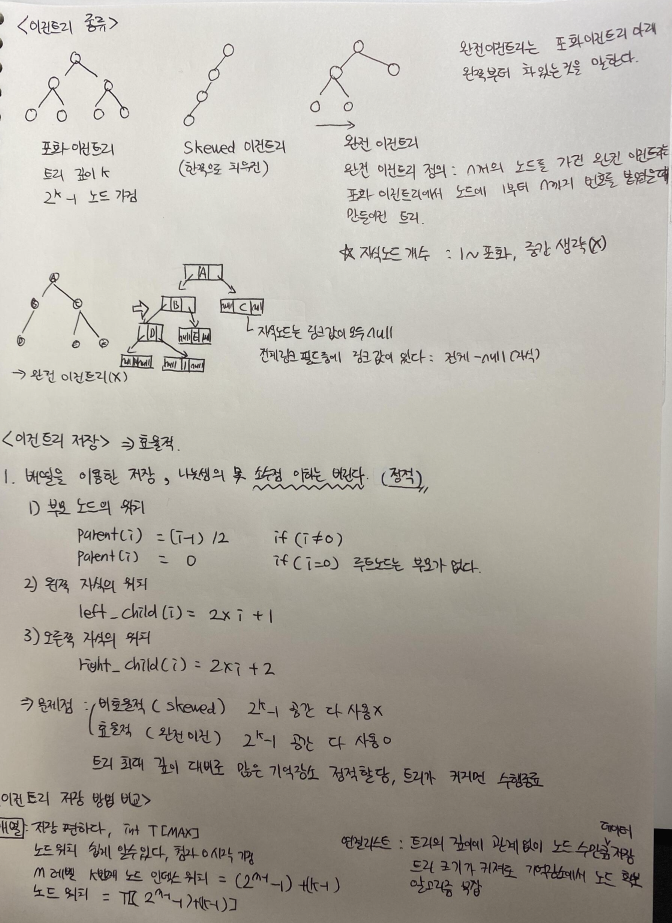 [ 자료구조 ] Skewed 이진트리 포화 이진트리 완전 이진트리